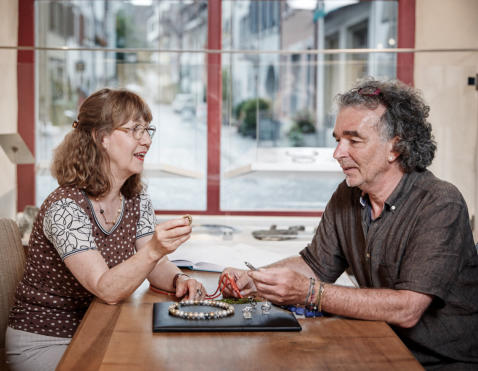 von unseren Fachhändlerinnen und FachhändlernInterview mit Max Iten und Brunhilde Loos, Goldschmiede Max Iten und Brunhilde LoosFischmarkt 11, 6300 Zugwww.maxitenbrunhildeloos.chIhr führt seit 25 Jahren hier am Fischmarkt ein gemeinsames Atelier. Wie macht ihr das?Max:WirentwickelndenSchmucknichtmiteinander.Jederarbeitetfürsich.Abernatürlichtauschenwirunsauchausundinspirierenuns gegenseitig. Es ist sicher nicht von der Hand zu weisen,dass sich unsere Formen angenähert haben.Brunhilde:FürKundenistesnichtmehrsoleichtzusagen,wasvonMaxodervonmirist.IchfühlemichkeinemStilverpflichtet.Esgeht einzigdarumetwasSchönes,Einzigartigeszukreieren.WirhabenfastzehnJahrelangineinemgemeinsamenAtelierinderOberAltstadt38 sehrexperimentellmitallenmöglichenMaterialiengearbeitetundhabenjeglichenSchmuckfürgrosseFirmenrepariert.IndieserZeithaben wirunssehrguteMaterialkenntnisse,solidehandwerklicheFähigkeitenundeingrossesRepertoireanEntwurfs-undGestaltungsprinzipien angeeignet, aus denen wir auch heute noch schöpfen.Wie schafft ihr es, immer wieder neue Ideen zu haben? Brunhilde:MichinteressierendieKraftunddieEnergie,diedurchForm,MaterialundInhalteinesSchmuckesbestimmtwerden.Dies verlangteineganzheitlicheBetrachtungsweiseunddieErkenntnis,dassalleDingeineinerBeziehungzueinanderstehen.Icharbeite zunehmendintuitiver–alleVerarbeitungstechnikensindmöglich.MeinZielistes,etwasSchöneszuschaffen,dasimBetrachteretwas aufbrechen lässt,ihn berührt. Etwas, das er nicht so schnell vergisst und auch gerne selber tragenmöchte.Max:Ichmages,zwischendurchwiedermalauszubrechenundmitanderenMaterialienundFormenzuarbeiten.Sofotografiereichzum BeispielgerneundbearbeitedieFotosaufdemComputerweiter.OderichbaueräumlicheSkulpturenausverschiedenenMaterialien.Diese ErfahrungfliesstdannzurückinmeineArbeit.ManchmalgestalteichgrenzwertigeGegenstände,wiezumBeispielein300gschweren Fingerring – so eine Art Schmuck-Skulptur.Was schätzen eure Kunden an euren Produkten? UnsereKundenliebenEinzelstücke,undsiefreuensich,zuwissen,weresgestaltetundhergestellthat.VonpersönlichenKunstwerkengeht eineganzbesondereKraftaus.VieleKundenverbindendasTragenvonSchmuckmitihrempersönlichenGlückoderschätzenden individuellen Ausdruck und das authentische Aussehen.Was habt ihr für den Herbst geplant? Wirfreuenunswieimmerdarauf,unserenKundenam AusstellungssonntagunsereneuestenKreationenzuzeigen.DiesesJahrfindeteram20. Novemberstatt. AndiesemTagöffneneinigeGeschäfteinderNachbarschaftihreTürenundbedankensichbeiIhrenKundenfürdieTreue.Es entsteht jeweils eine besonders herzliche,manchmal fast schon vorweihnachtliche Atmosphäre.Wie sieht eure typische Kundschaft aus? UnsereKundschaftistsehrvielfältig.WirhabennichtnurKundenausZugoderausderSchweiz.AuchBesucherausdemAuslandverlieben sich oft auf den ersten Blick inunseren Schmuck. Häufig kommen sie dann immer wieder zu uns zurück.Warum Zug? Warum die Zuger Altstadt? EsgibtinZugeinesehralteGoldschmiedetradition.IndieZugerAltstadtpassendieAteliersdeshalbsehrgut.Wirfühlenunshiersehrwohl. DiebesondereAtmosphärepasstgutzuunseremHandwerkundunserGeschäftistamFischmarktidealgelegen.Hierwarenschonim16. Jahrhundert Goldschmiede am Werk.Was wünscht ihr der Zuger Altstadt in Zukunft? WirfindendieZuger Altstadtsehrschön,sowiesieist.Wirwürdenunswünschen,dassauchmehrZugerdaswiederschätzenlernen,wasdie auswärtigen Besucher sofasziniert an diesem Ort abseits der Hektik.